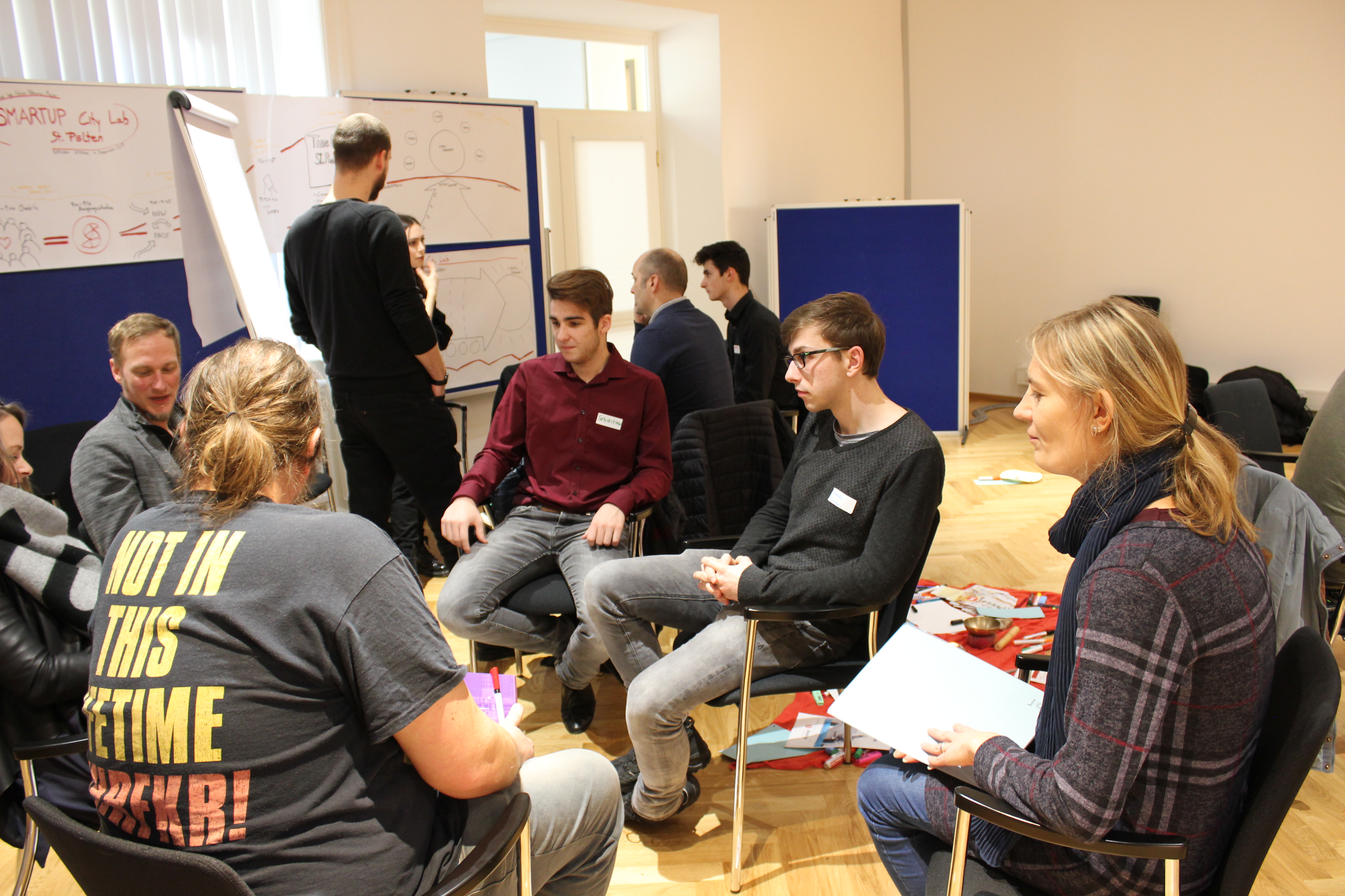 Zu den Teilnehmer*innen des SMARTUP City Lab zählten Verantwortliche, Engagierte, kluge Köpfe und St. Pölten-Begeisterte. Dazu mischten sich Schüler*innen der HTL St. Pölten, die Themen bei der vorangegangenen Open Innovation Challenge einbrachten. Mit ihnen gemeinsam wurden weiter verschiedene Ideen zur Steigerung der Attraktivität der Stadt St. Pölten als Gründungsstandort erarbeitet.